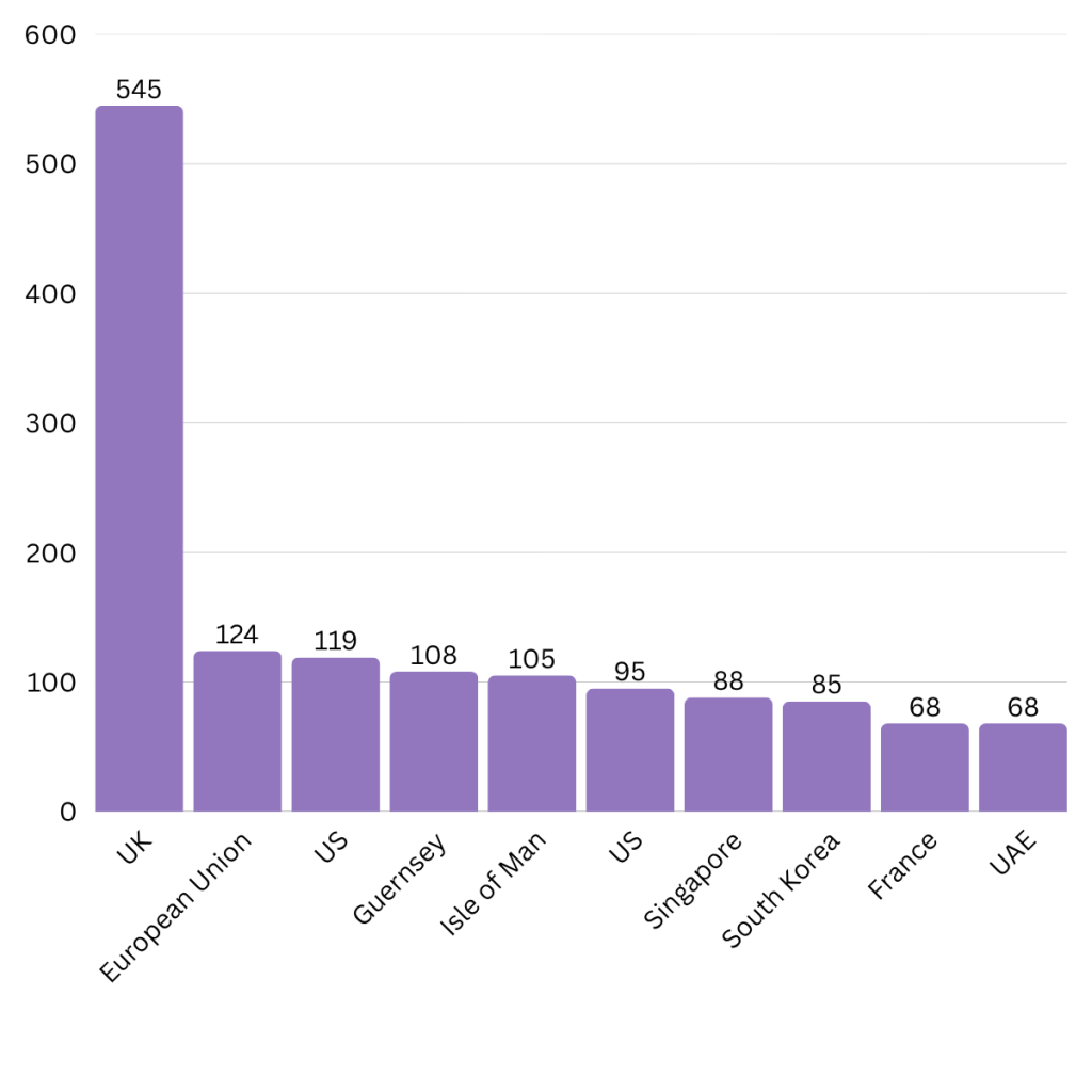 - Guernsey (108), Isle of Man (105): even smaller jurisdictions are publishing significant AML guidance, underlining their role in global regulatory ecosystems including offshore banking and funds. Guernsey is strengthening ML investigations and SAR quality following MONEYVAL review; updated country-risk lists. The IIsle of Man is re-baselining customer and country risk scoring under its revised AML Handbook.