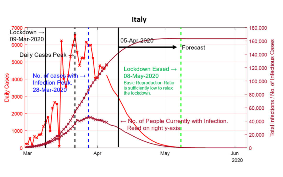 Last week, we predicted the number of daily new cases of Covid-19 in Italy has peaked and infection rate will start dropping. This is indeed what the data showed since we published.