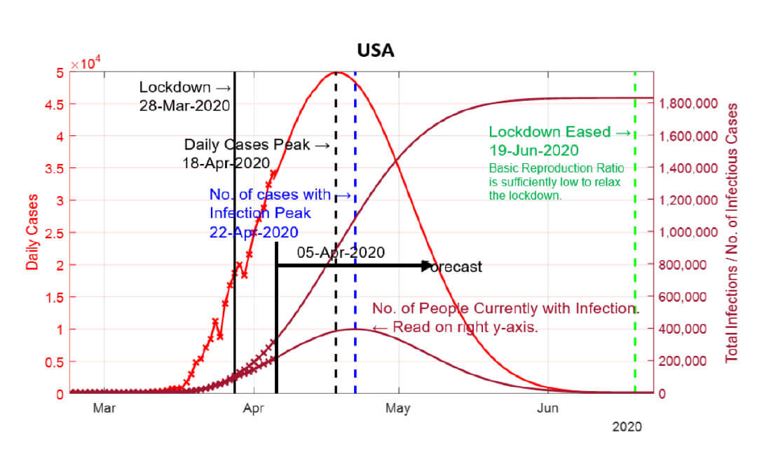 The number of daily new cases are on increase and will soon peak around 06 April 2020. The number of infectious cases will peak on 08 April 2020. The number of infectious cases and Reproduction Ratio will be low enough to ease lockdown on 01 June 2020.